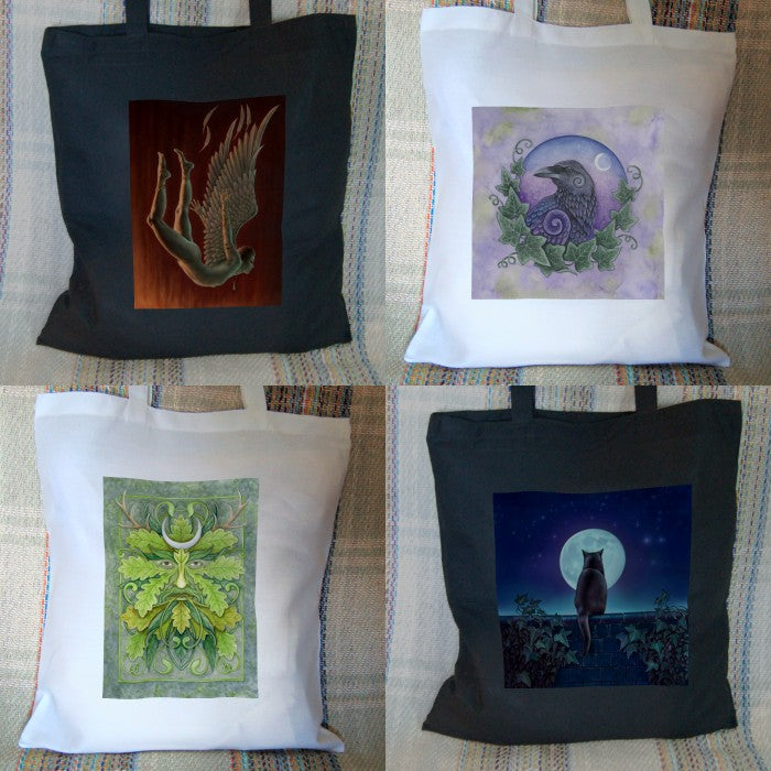 Wholesale tote/shopping bags featuring fantasy, mystical/pagan and nature-themed art. Small bags for...