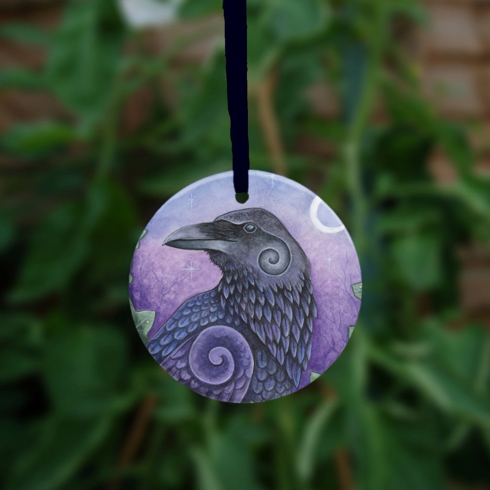 Wholesale circular ceramic hanging ornaments featuring art by Esther Remmington.